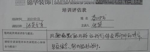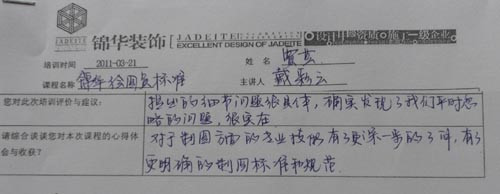 3月21日,公司在所有在編繪圖員和部分有潛力的實(shí)習(xí)生范圍中召開了一場繪圖員培訓(xùn)。本次培訓(xùn)由人力資源部牽頭,首先邀請了研發(fā)中心戴彩云老師對繪圖員的制圖規(guī)范和標(biāo)準(zhǔn)做了講解,對每季度繪圖員上繳作品情況也做了案例分析,其次是安排了主任設(shè)計師崔堯、高級設(shè)計師單清和堂杰工作室首席設(shè)計師張笑做了培訓(xùn)分享。最后由人力資源包總闡述了設(shè)計部儲備人才的“雛鷹計劃”的具體實(shí)施步驟及考核方案。優(yōu)秀的繪圖員作為錦華內(nèi)部的設(shè)計師儲備人員,將會在錦華這個優(yōu)秀的平臺上得以平穩(wěn)成長,錦華需要的是有志向、有方法、有心態(tài)的務(wù)實(shí)性人才,只要踏實(shí)認(rèn)真一步一個腳印的遵循公司的成長體系,相信,“雛鷹”終將會成長為一只在錦華天空中自由翱翔“雄鷹”!
