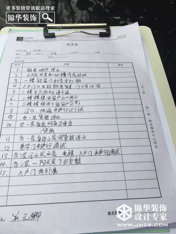 本次驗房,我們的工作人員針對房屋的水電,墻面,頂面,地面進行了詳細的檢查,并給出書面報告,為業主提供專業的房屋問題解決方案和建議。希望讓廣大富力業主在裝修前把房屋問題全面解決