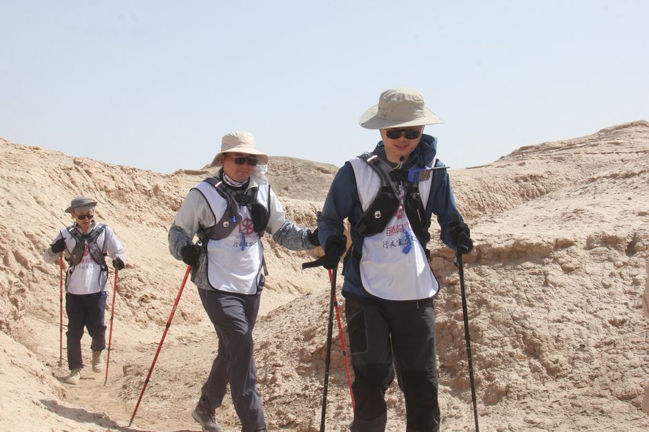 相比于城市里的溫潤,大漠戈壁里的天氣可謂是非常不友好,近40度高溫,伴隨著干燥與風(fēng)沙…兩天50公里徒步路,對于我們,不僅是生理上,更是心理上的挑戰(zhàn)!