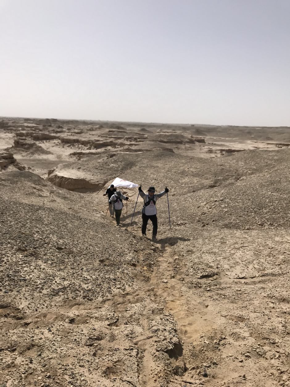 ▲從堿泉子到火燒湖,大漠戈壁50公里,兩天一夜徒步遠征,伙伴們無一放棄,以堅強的意志完美抵達終點