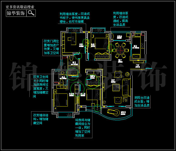 (5)將主臥小陽臺拆除,給主臥增添空間使主臥室功能明朗化,使臥寢功能區(qū)擴大。寬敞。